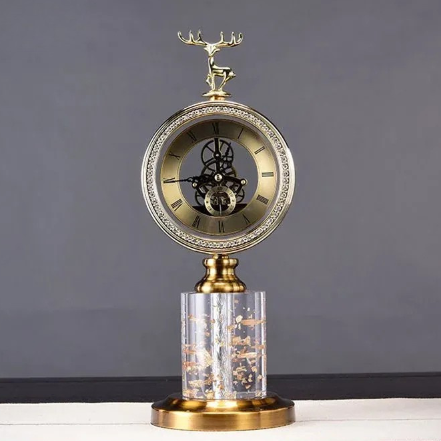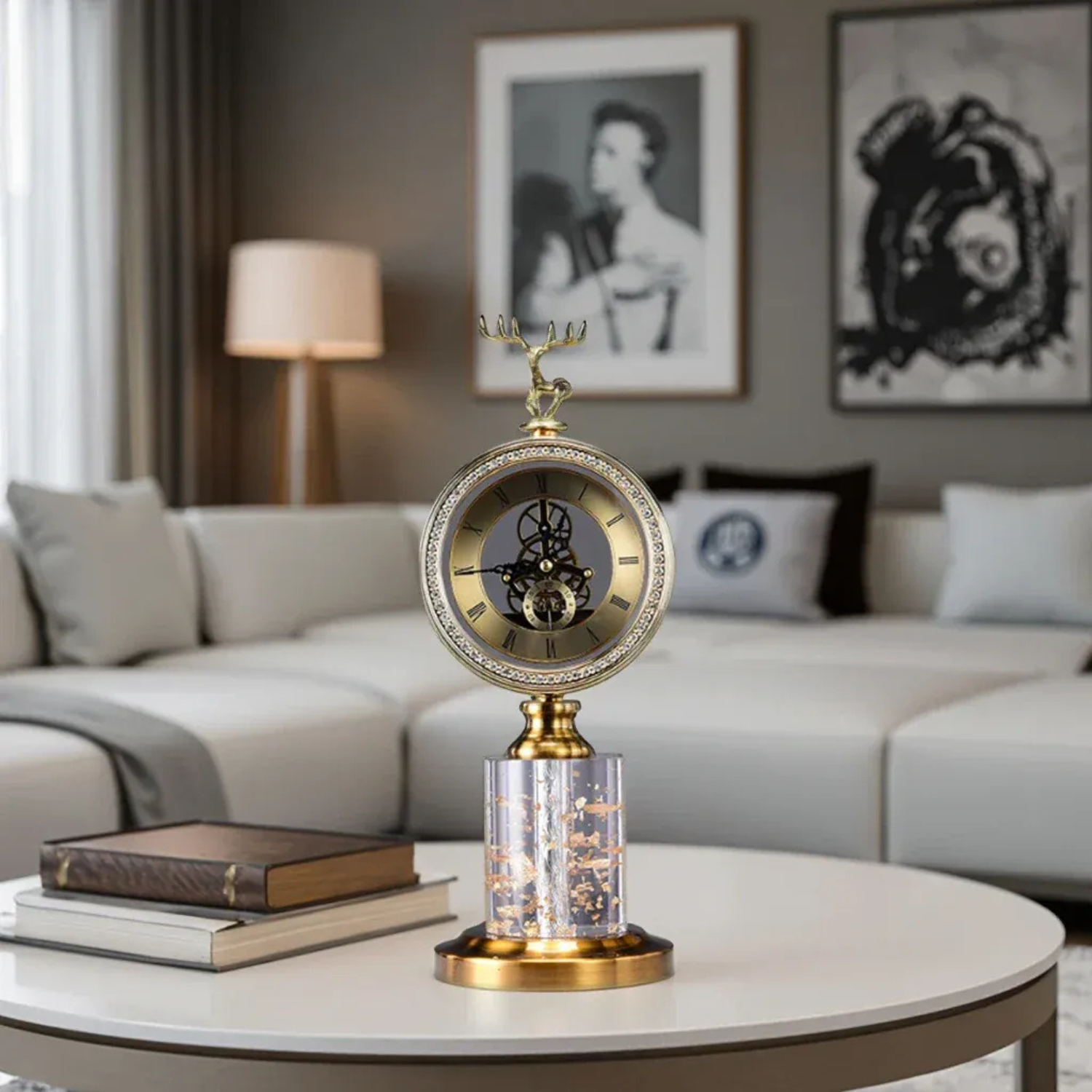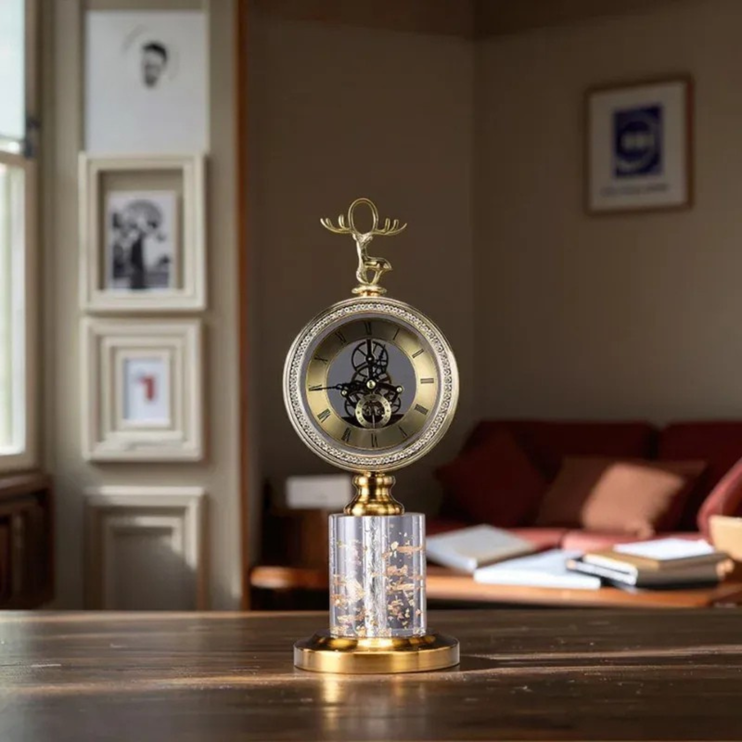 Diese edle Hirschkopf-Tischuhr vereint künstlerische Handwerkskunst mit moderner Eleganz.