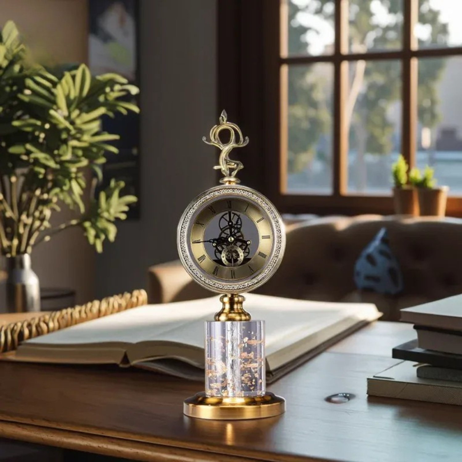 Mit einer Höhe von 38 cm ist sie nicht nur eine Uhr, sondern ein dekoratives Meisterstück, das jedem Raum Charakter und Raffinesse verleiht.