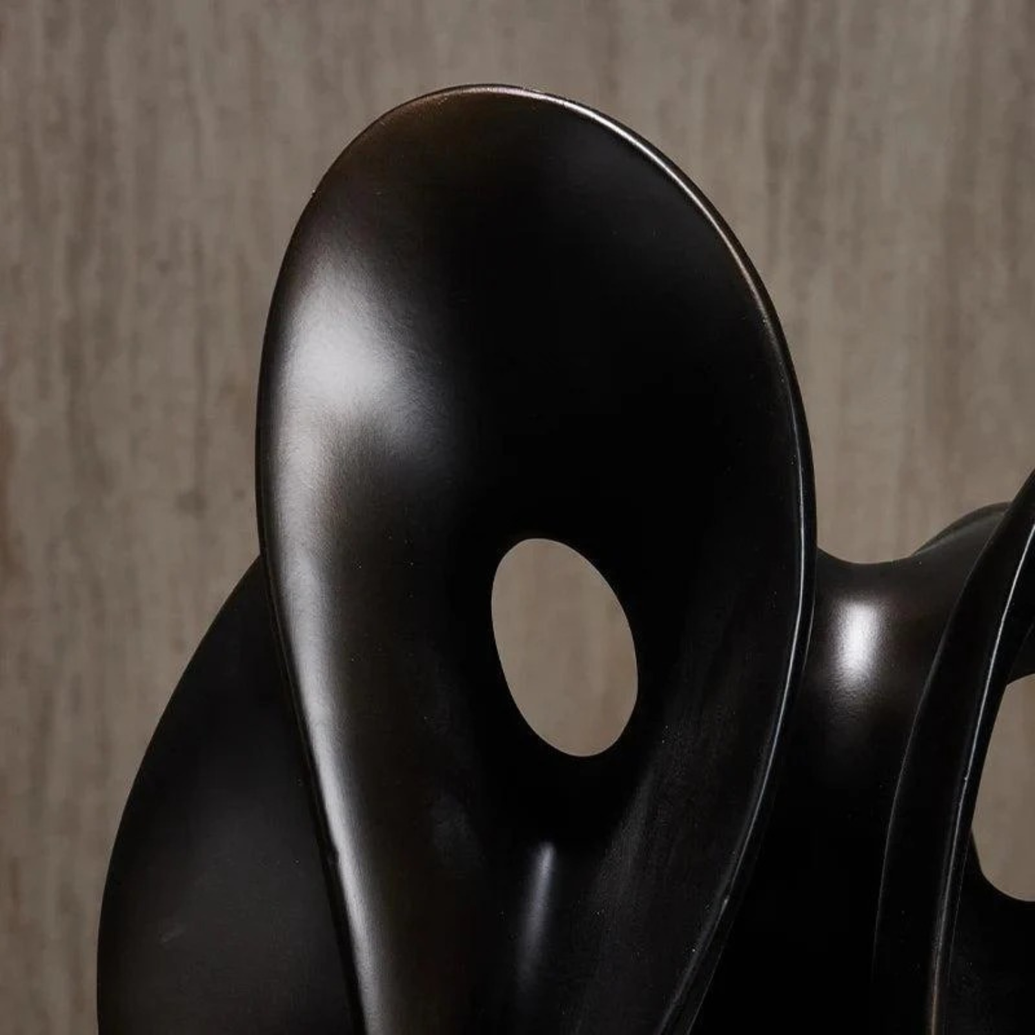 Die Abstrakte Luxus Skulptur verkörpert moderne Eleganz in ihrer reinsten Form. Mit fließenden Linien und einer tiefschwarzen, seidig-matten Oberfläche entsteht ein harmonisches Zusammenspiel aus Bewegung und Ruhe.