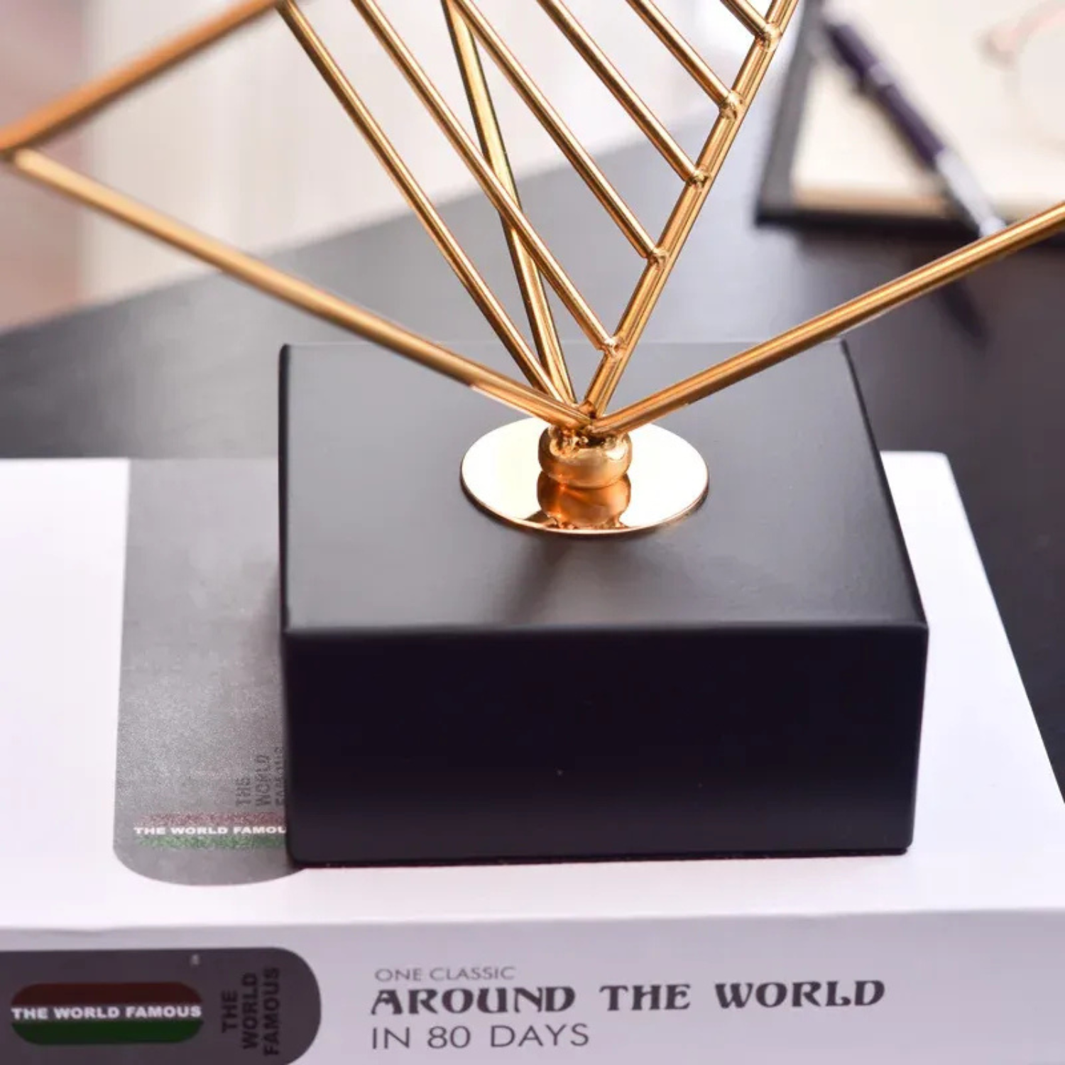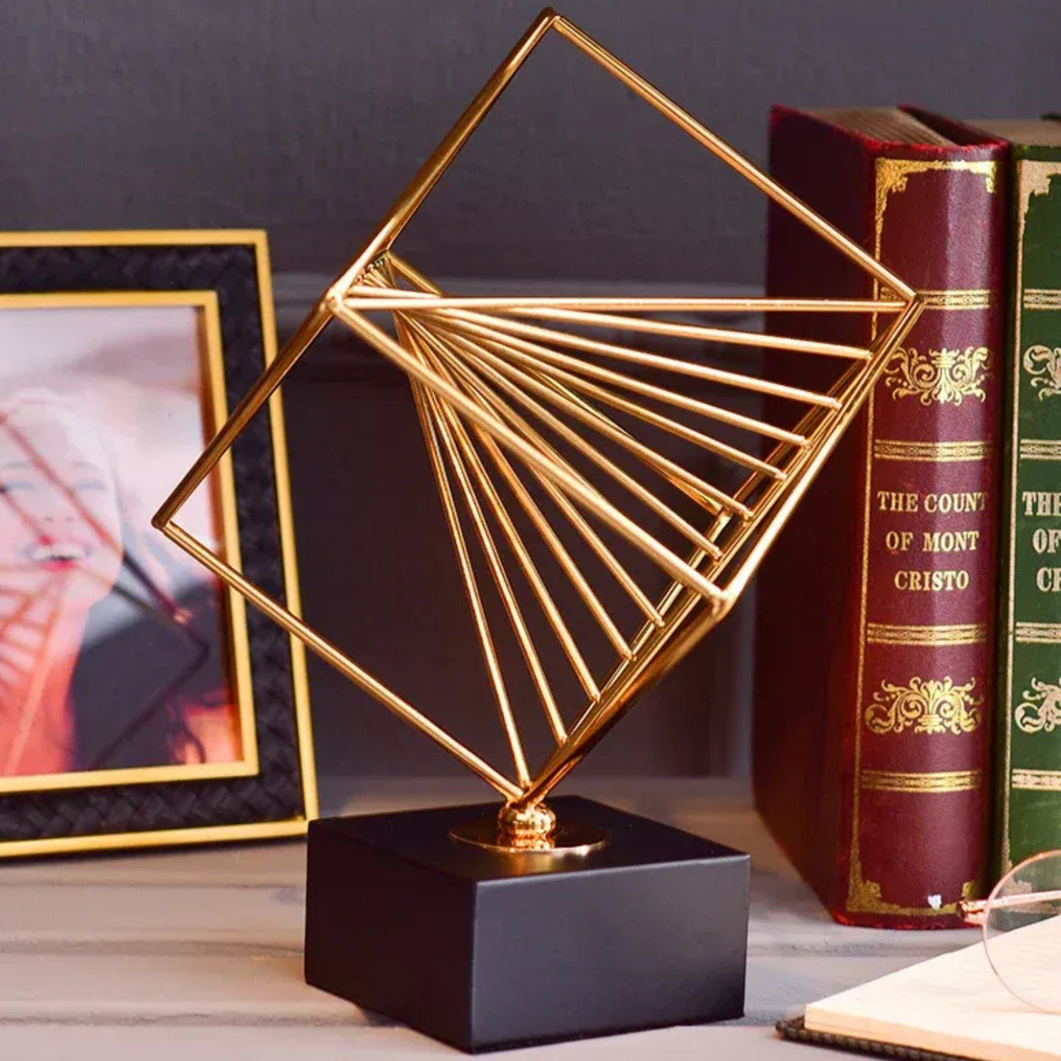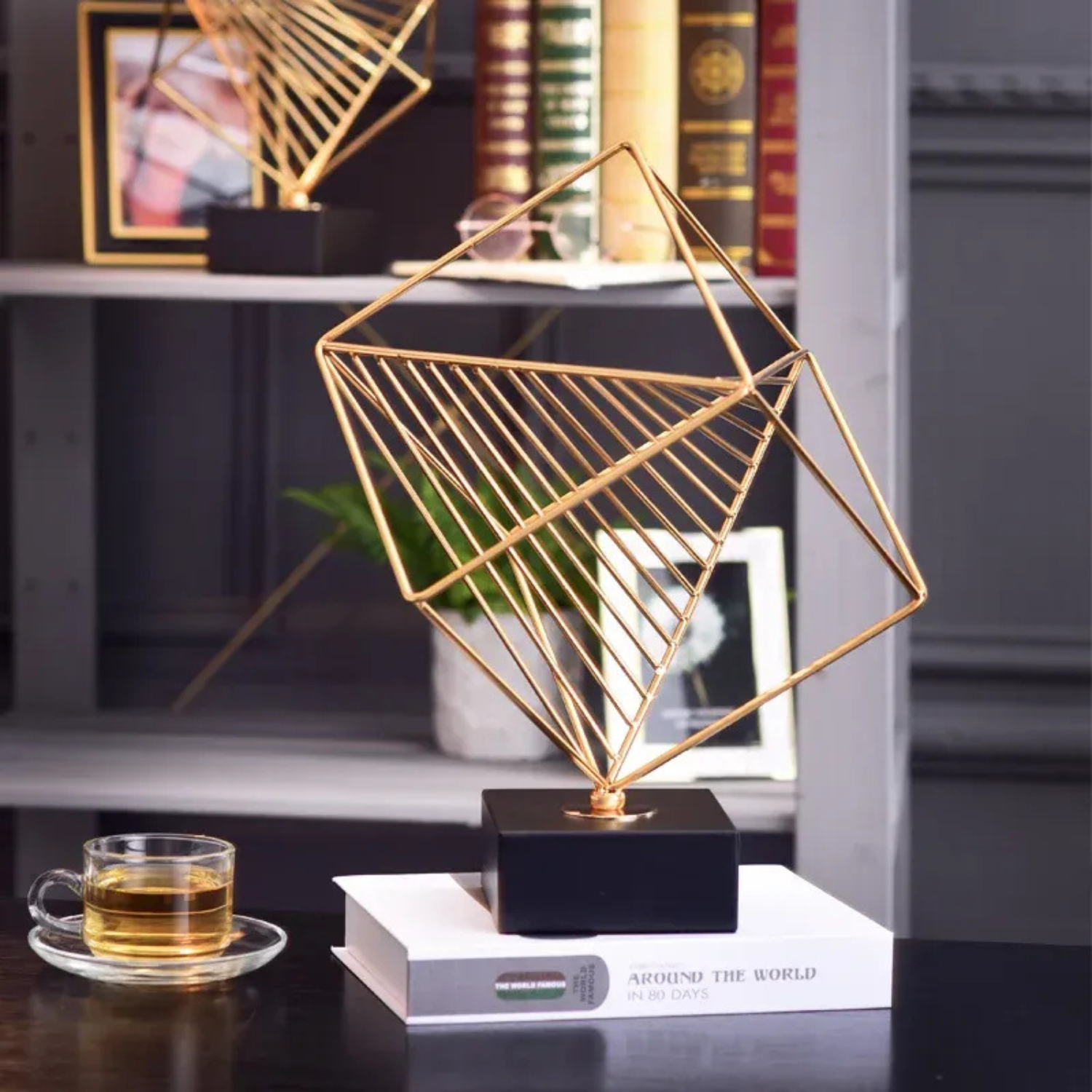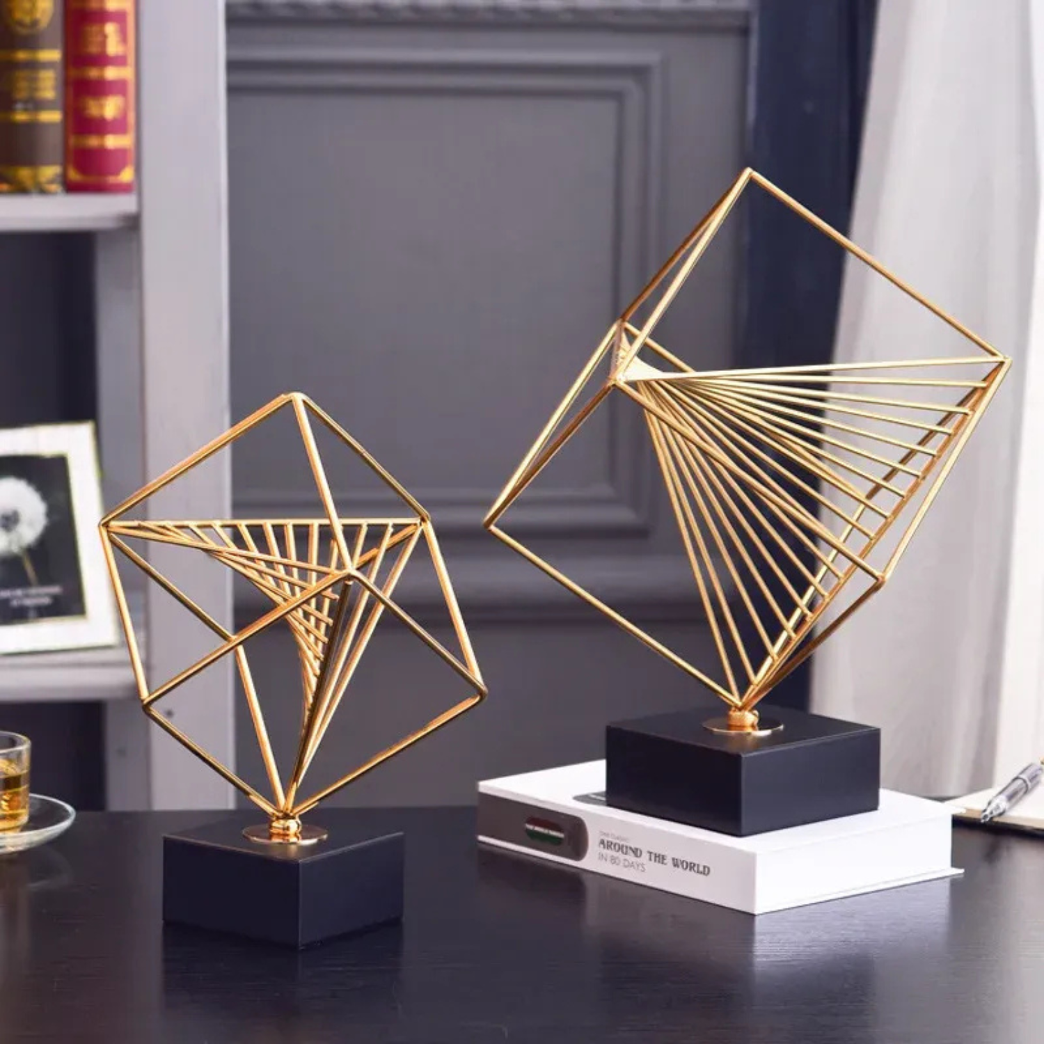 2er Set Luxus Gold Metall Skulpturen mit Marmorfuß Geometrisch