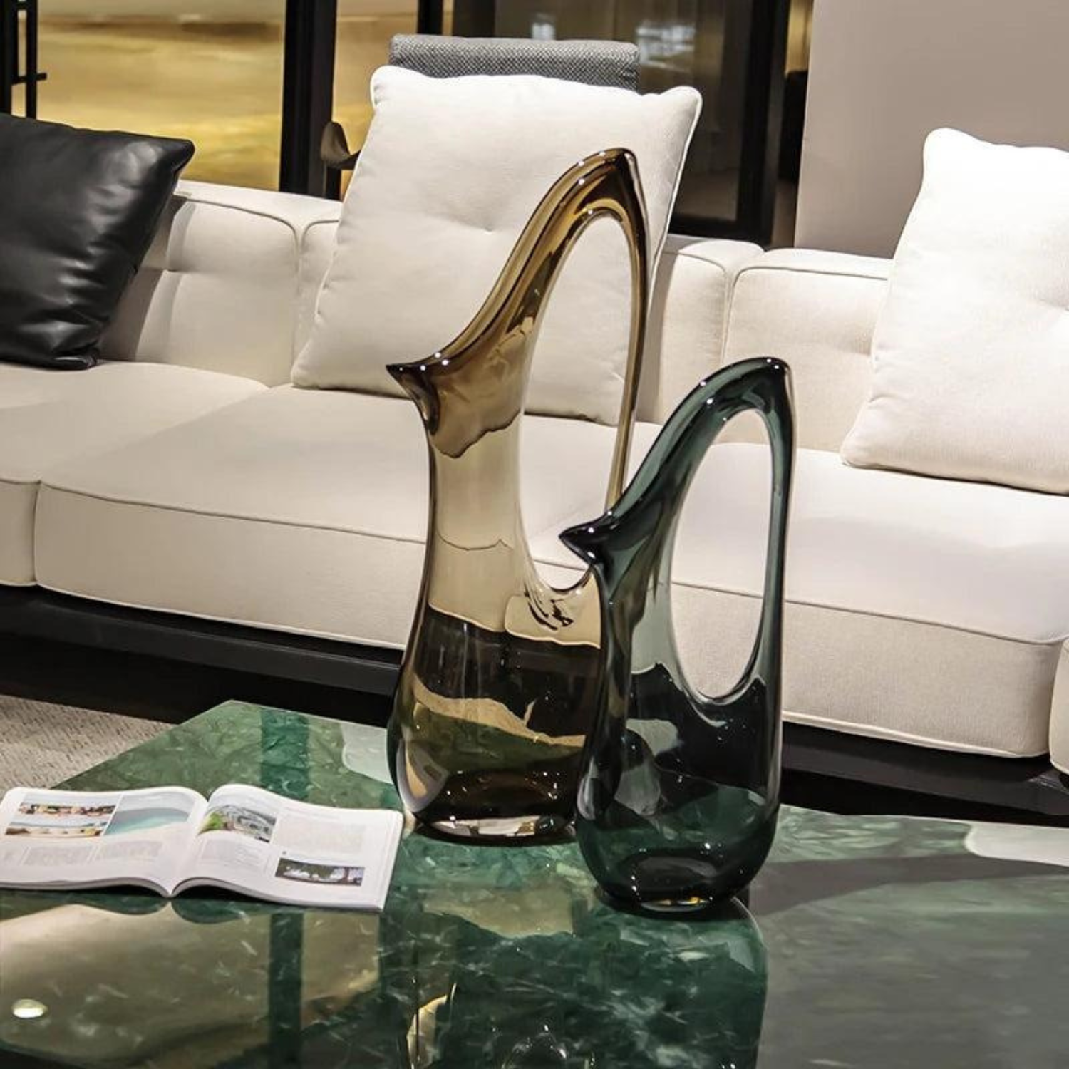 Große Handgefertigte Glasvase – Modernes Vogel-Design für Blumen