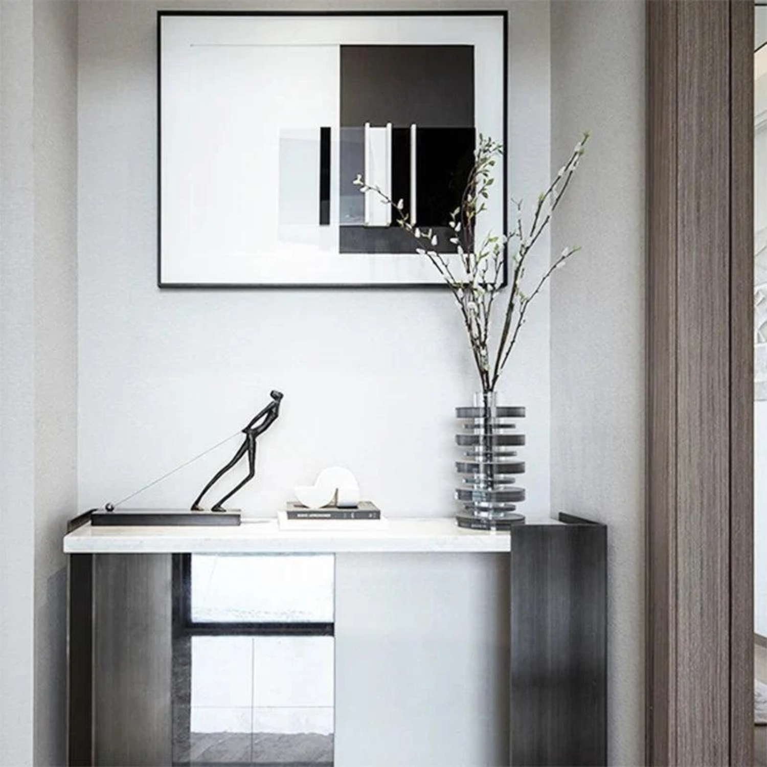 Die elegante handgefertigte Metallskulptur verkörpert moderne Kunst in ihrer edelsten Form. Gefertigt aus Zinnlegierung, Edelstahl und echtem Marmor, verbindet sie Materialstärke mit künstlerischer Raffinesse. Das dunkle Bronze-Finish verleiht der Skulptur Tiefe, Glanz und zeitlose Eleganz.