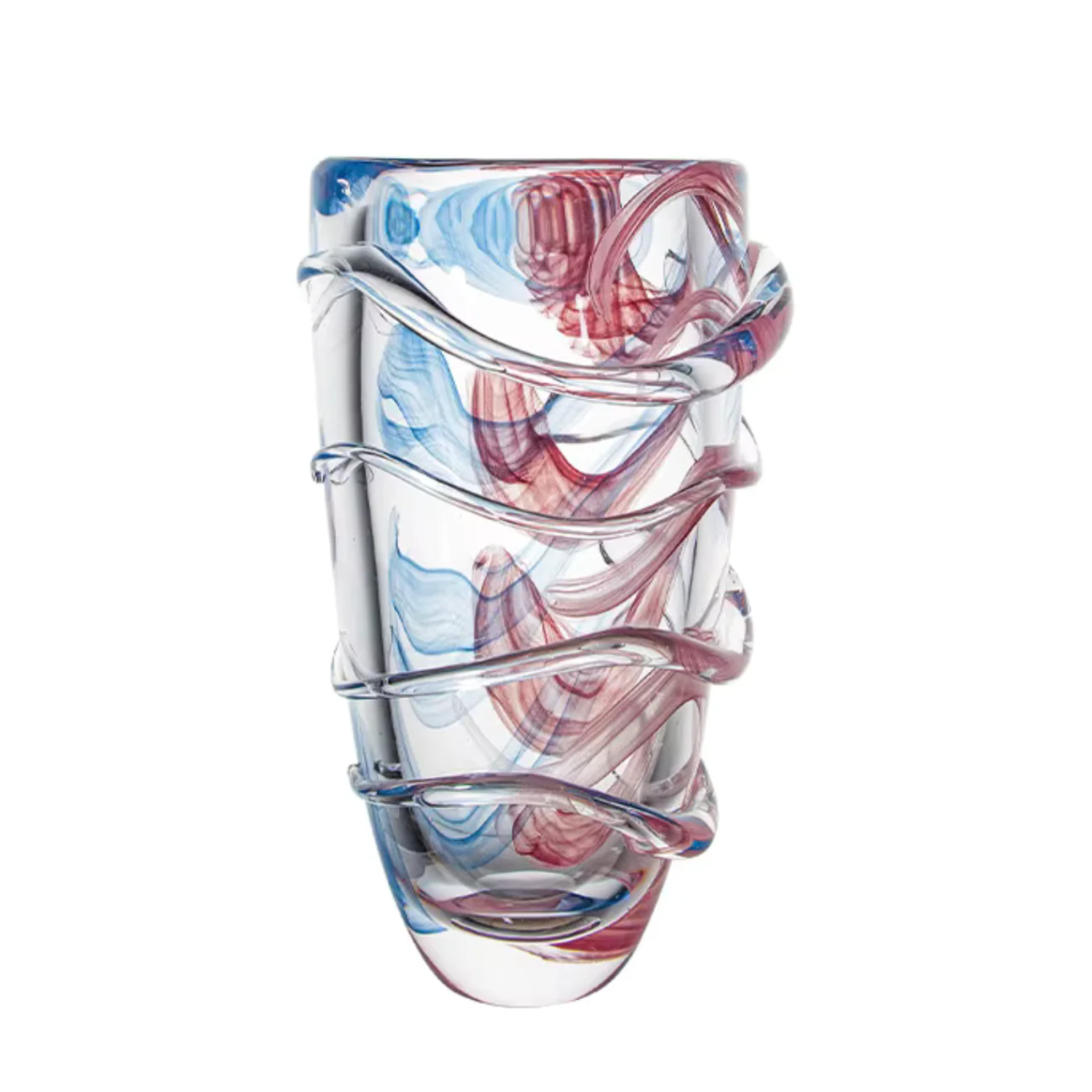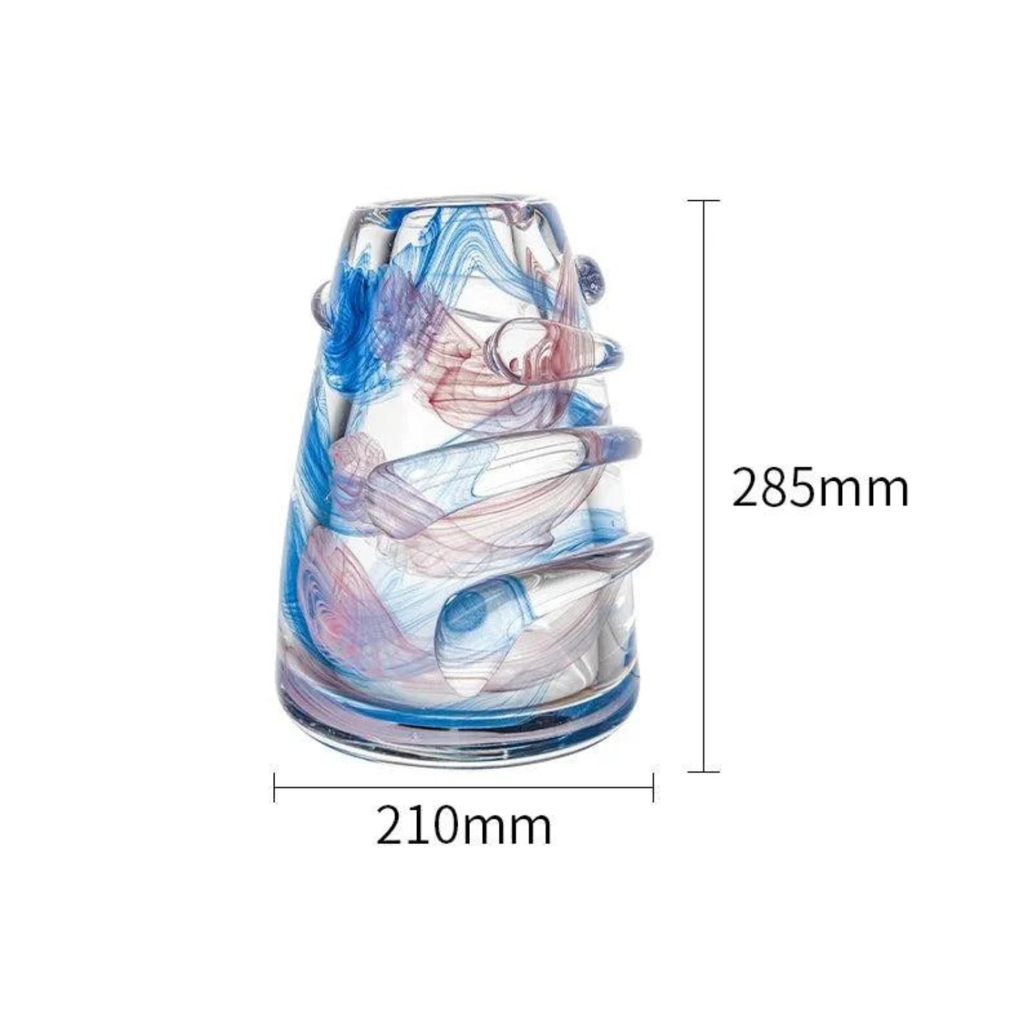 Handgefertigte Moderne Kunstglasvase – Farbige Wohnkultur mit Blau- und Roséakzenten – Einzigartiges Design mit Unregelmäßiger Struktur