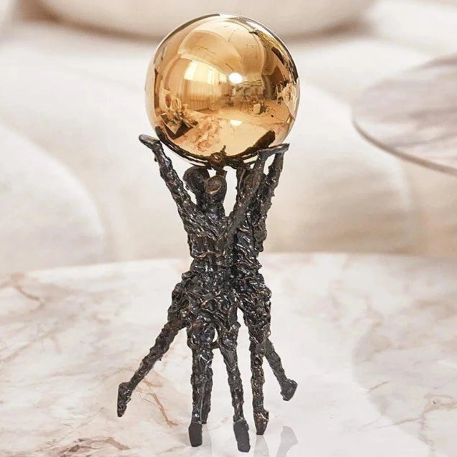 Luxuriöse Goldkugel Skulptur – Metall Tischdekoration,