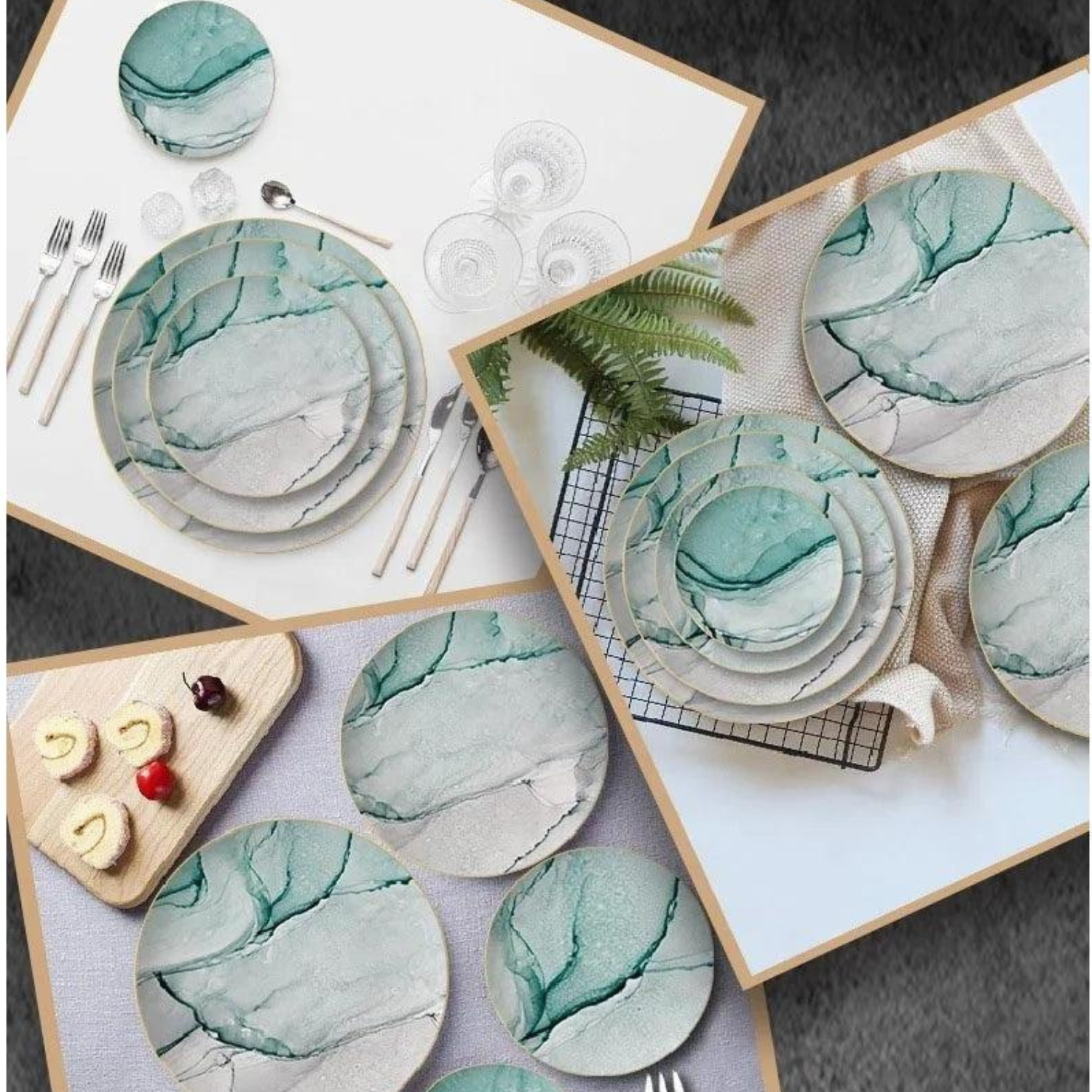 Eleganz & luxuriöses Design – Das Green Marble Bone China Geschirrset vereint edles Marmor-Design mit frischem Grünton und verleiht Ihrem Tisch eine stilvolle, luxuriöse Note. Perfekt für festliche Dinner, moderne Restaurants oder elegante Wohnräume.