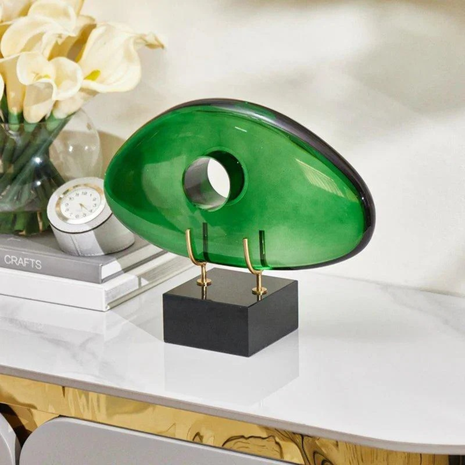 Luxuriöse grüne Desktop-Skulptur – Kristall & Marmor