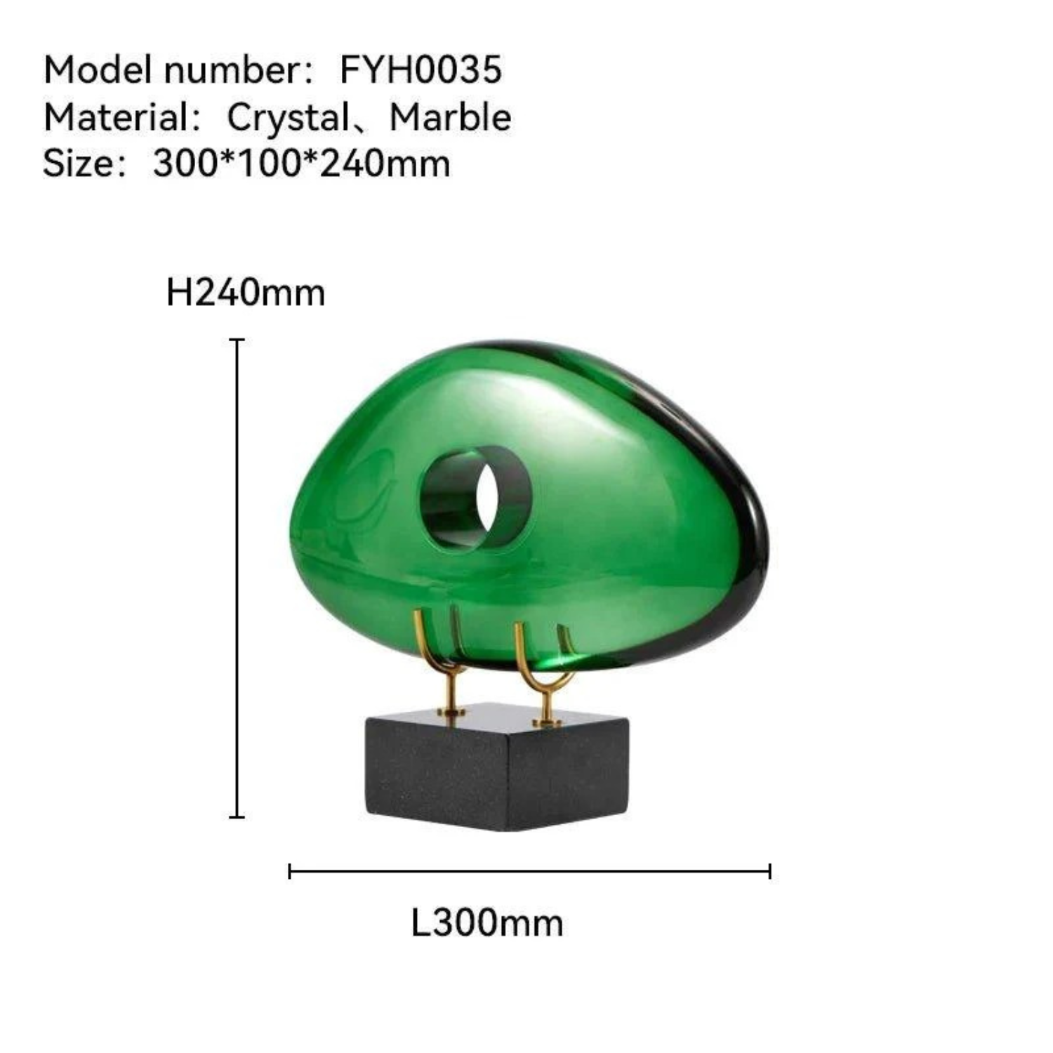 Verleihen Sie Ihrem Zuhause luxuriösen Glanz mit der Grünen Desktop-Skulptur von Quality Elegance. Diese handgefertigte Figur aus edlem Kristall und feinem Marmor kombiniert modernes Design mit erstklassiger Handwerkskunst.