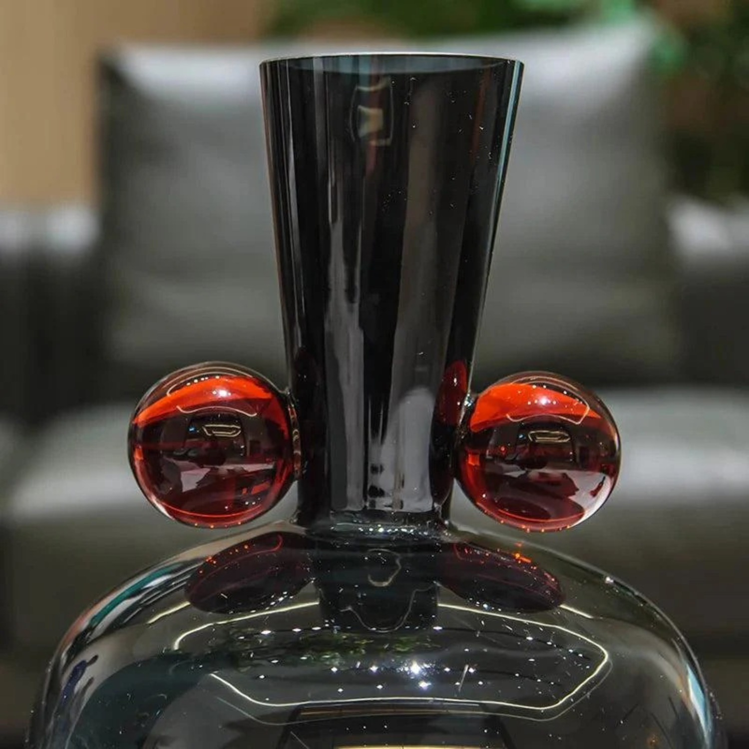 Keywords: Luxus Glasvase, graue Vase, moderne Glasvase, handgefertigte Vase, Designer Vase, Hydroponik Vase, Wohnaccessoire, Centerpiece, Blumenvase, Einzigartige Dekoration, Handarbeit, Kunstglas, exklusive Wohnkultur, modernes Wohnen
