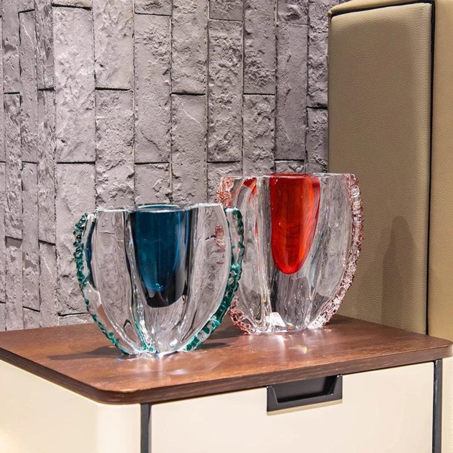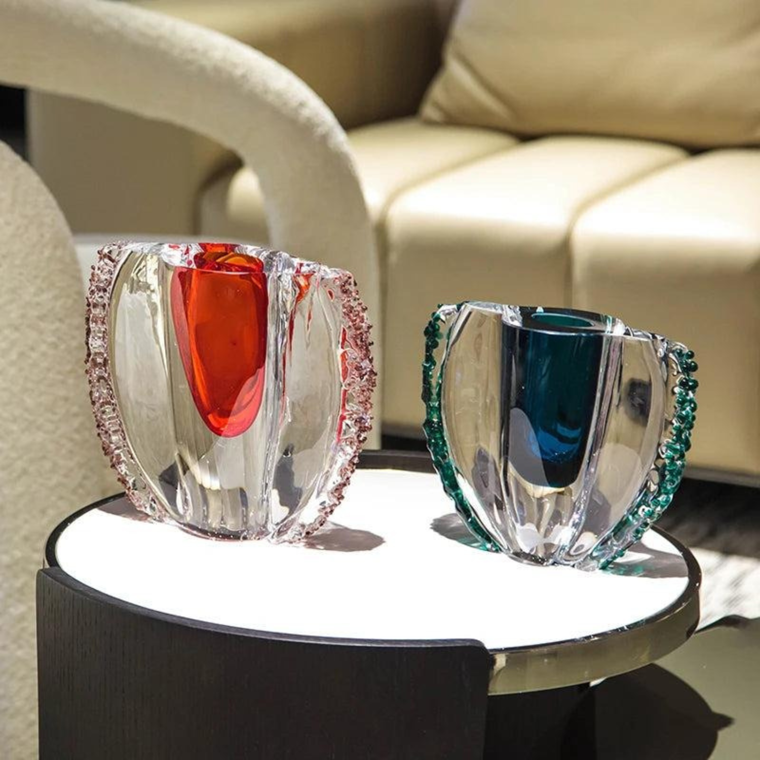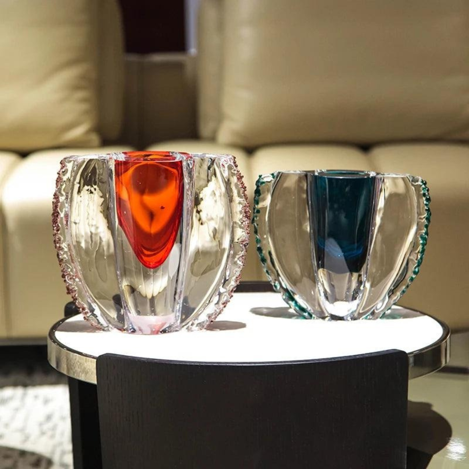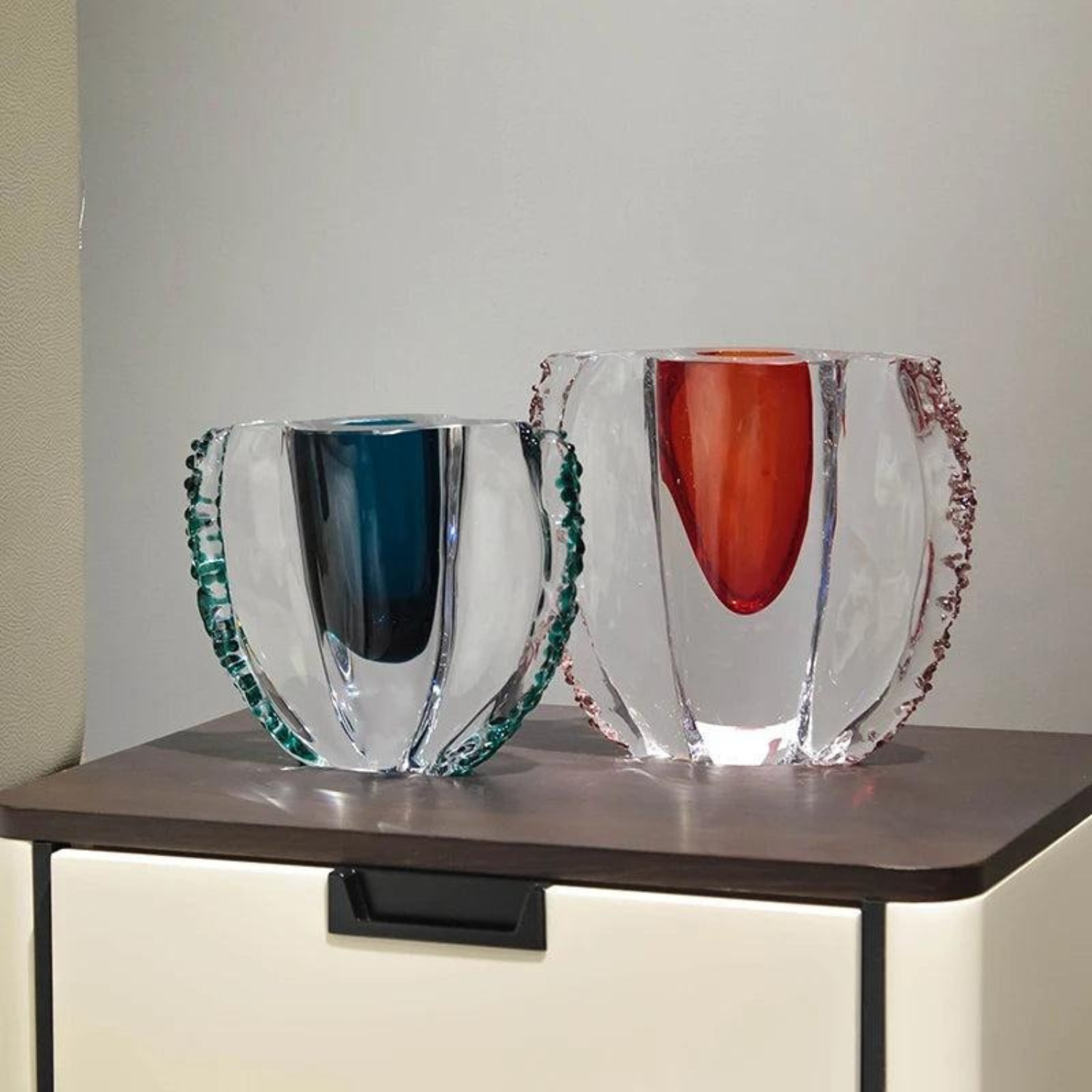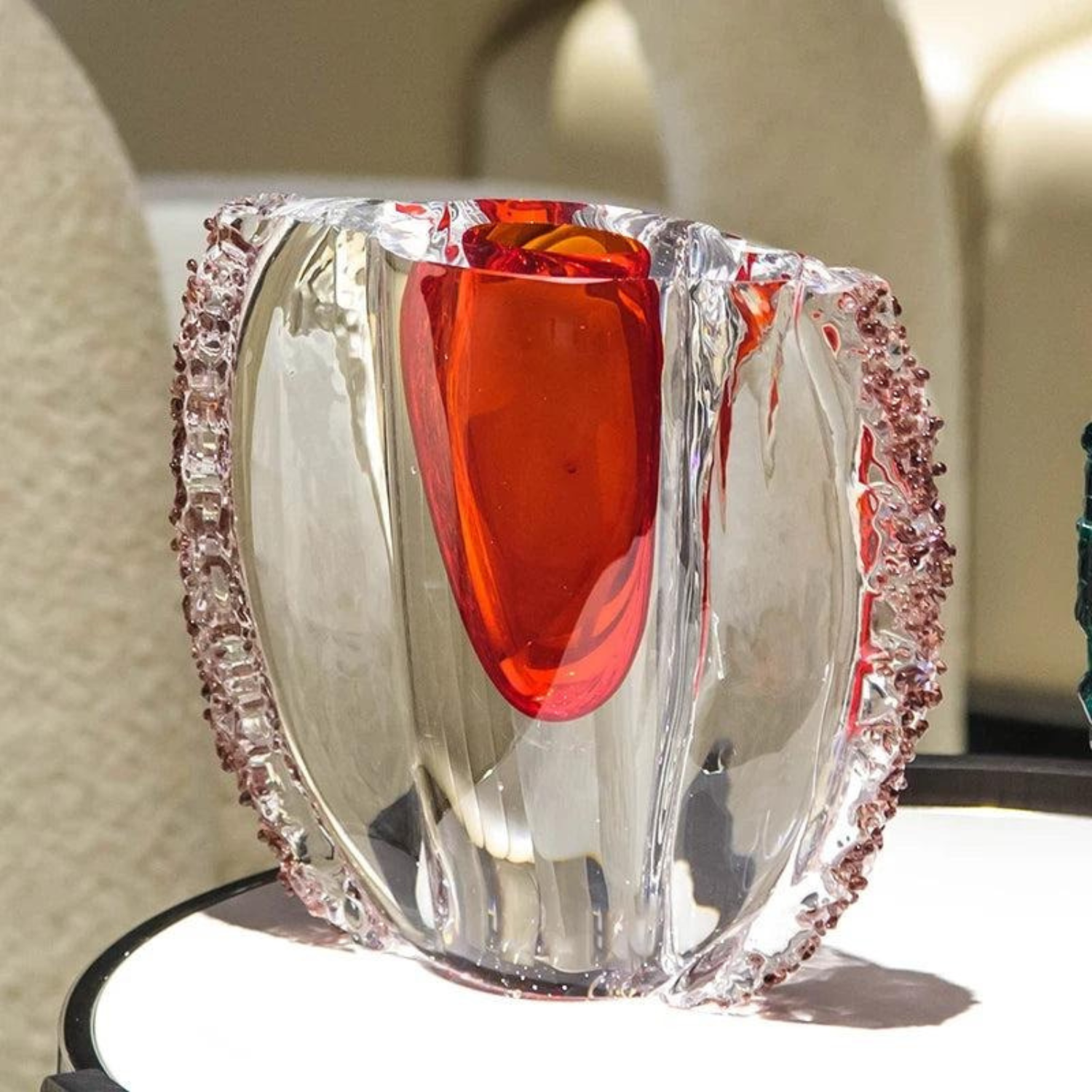Keywords: Kristallskulptur, Luxus Dekoration, Pokalform Glas, Designer Kristall, Handgefertigtes Glas, Moderne Deko, Kristall Ornament, Smaragdgrün, Rubinrot, Centerpiece, Wohnaccessoire, Glasobjekt, Hochwertige Dekoration, Interior Design, Handarbeit, modernes Wohnen, Luxus Wohnkultur