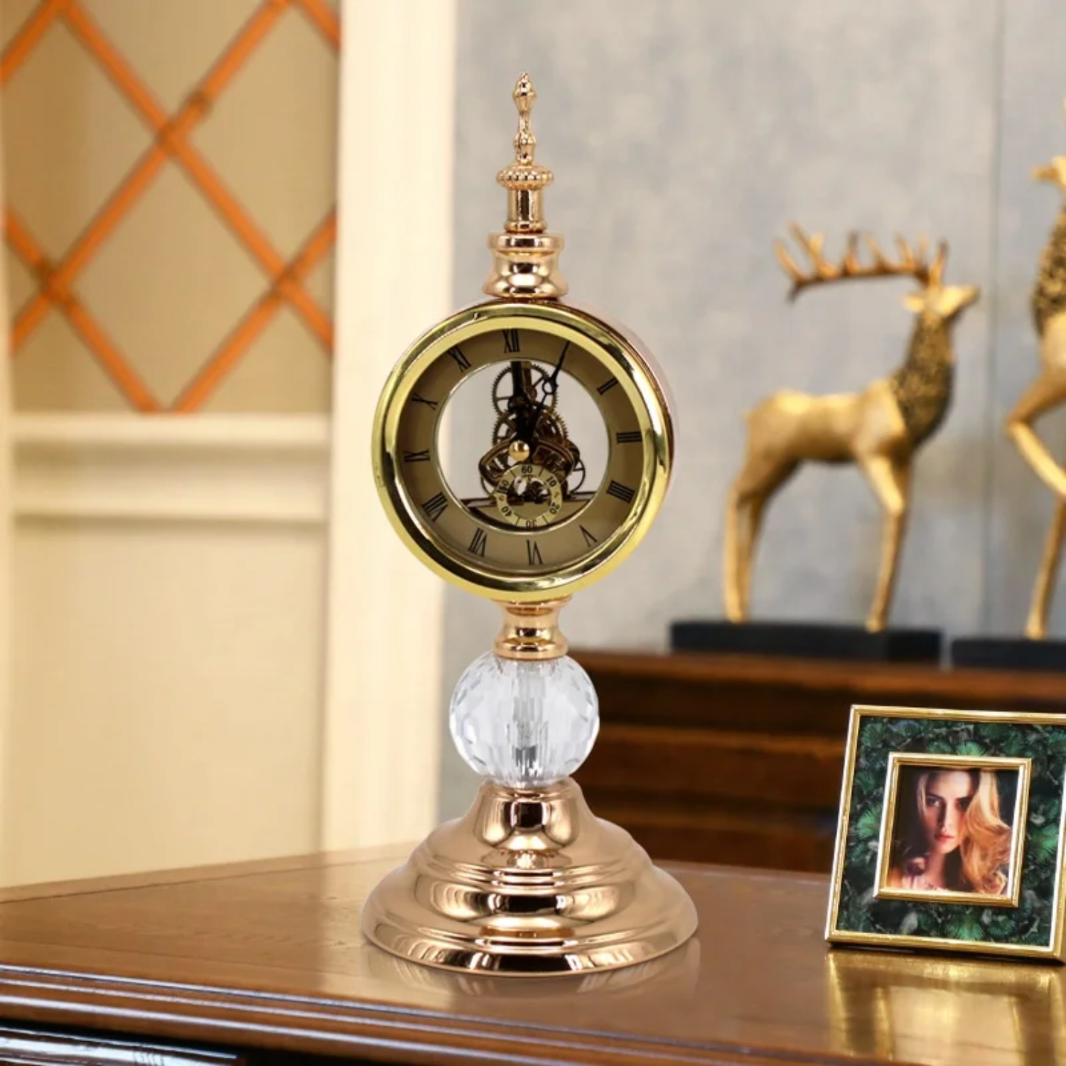 Retro Goldene Mechanische Tischuhr mit Kristallfuß
