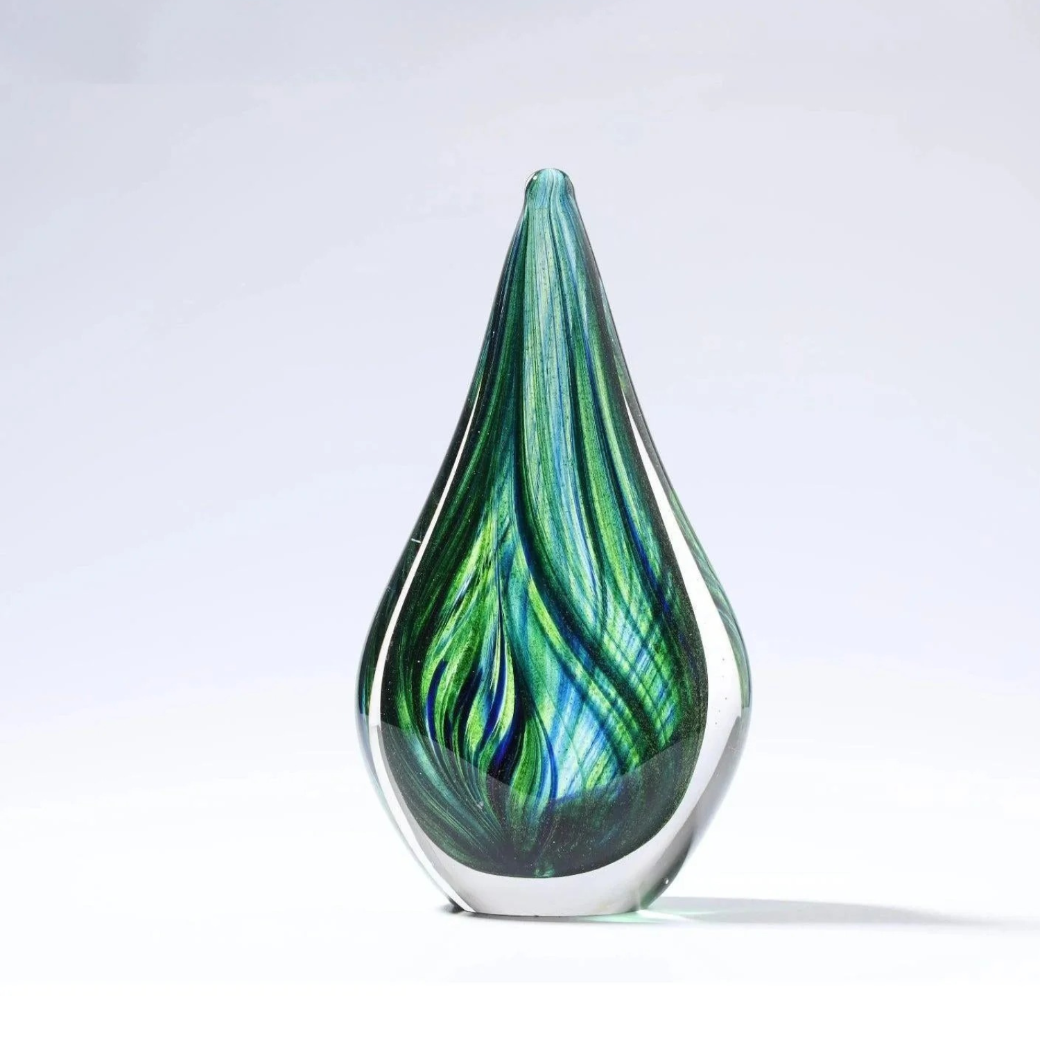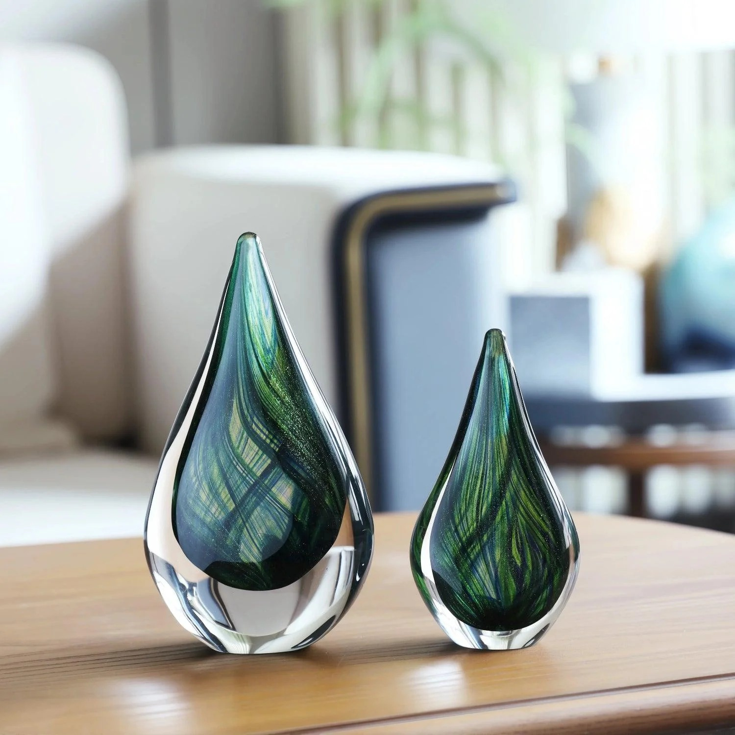 Das 2er Set handgeblasener grüner Glaskuppeln und Dekorationskugeln vereint kunstvolle Handwerkskunst mit zeitloser Eleganz. Jede Kugel ist ein mundgeblasenes Unikat – mit lebendigen Wirbelmustern und sanftem Glanz, der Licht und Farbe harmonisch reflektiert.